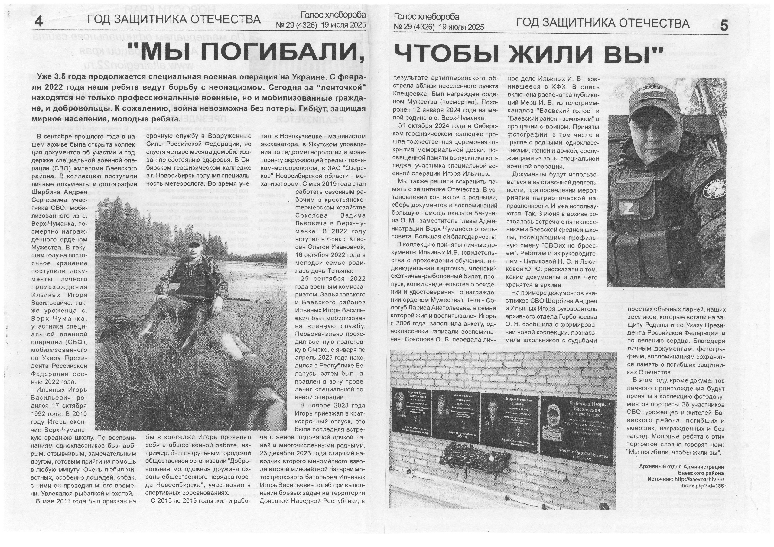 «Мы погибали, чтобы жили вы» //Голос хлебороба, 19.07.2025 № 29